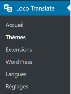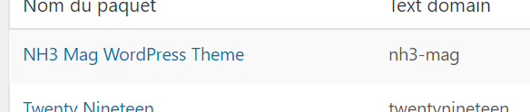Pour traduire les textes affichés sur le site, accéder à la page Loco Translate > Thèmes, puis cliquer sur le thème NH3 Mag WordPress Theme.