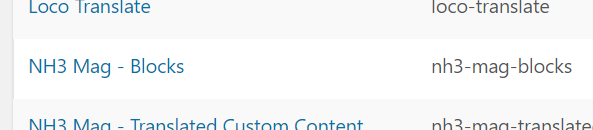 Pour traduire les textes affichés sur le site dans les blocks NH3 (par exemple “Sur le même sujet”), accéder à la page Loco Translate > Extensions, puis cliquer sur l’extension NH3 Mag - Blocks.